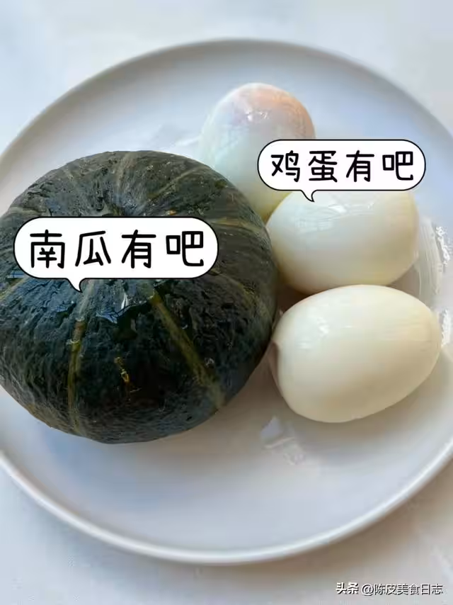 貝貝南瓜把外皮削掉,切成小塊上鍋蒸熟,雞蛋也蒸熟剝殼備用。