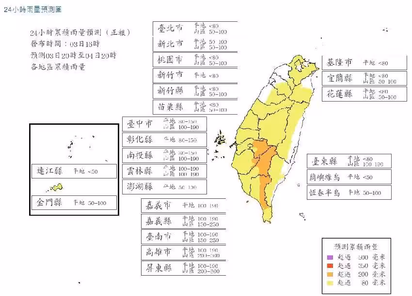 快訊/8/4「3縣市停班停課」達標!最新雨量預測,24小時轟300毫米!