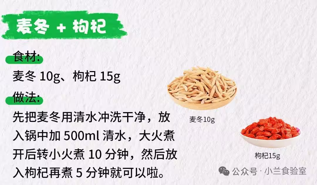 麥冬養陰生津+枸杞滋補肝腎明目。堪稱「電眼組合」!長期看手機電腦的護眼神器!肝血腎精充盈了,雙眼自然明亮有神,告別「死魚眼」!
