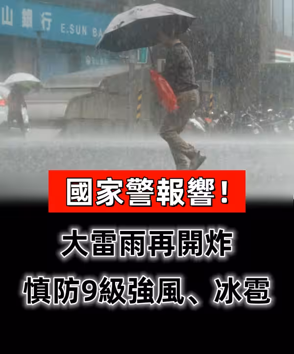 快訊/國家警報響!大雷雨再開炸 慎防9級強風、冰雹