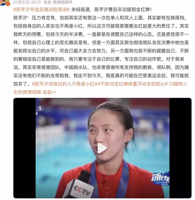 陳若琳也未想到,退步到第5名的全紅嬋,意外收穫口碑暴漲