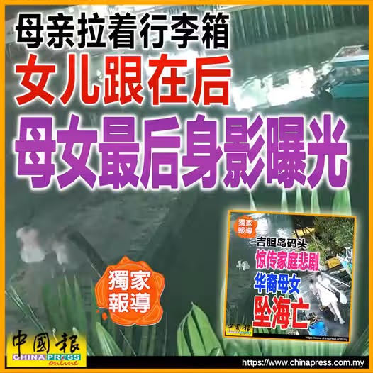 《中國報》探悉,事發前,華裔母親攜帶女兒在吉膽島的住宅範圍步行,當時可見母親一手拉著行李箱,另一手則拿著疑似袋子的物品,女兒則跟在後方。