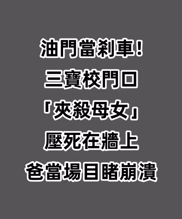 一名女駕駛開車送小孩上學,卻不慎撞上同樣要準備上課的一對母女,她一時情急誤把油門當剎車,又把母女狠狠擠壓在學校圍牆上,2人當場重傷身亡。