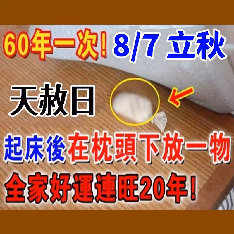 🌟 不是迷信!8月7號「立秋+天赦日」枕頭下放一物,全家好運連旺20年! 🌟
