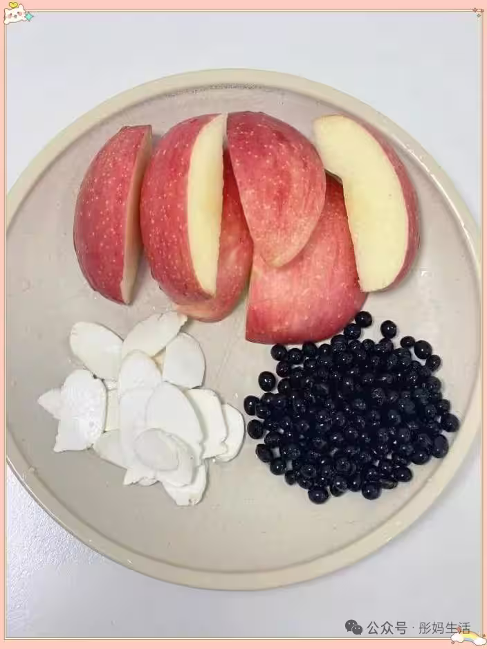 很方便的做法:先把泡發好的黑豆和山藥干一起沖洗乾淨,加上蘋果塊,統統放進砂鍋或者養生壺裡,加入足夠的清水,燉煮 25 分鐘。想要甜,自己配上冰糖就可以。