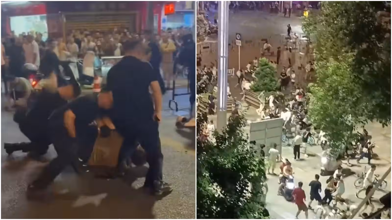 凌晨3時許警方再次進行清場(右圖),民眾四處逃跑。(圖/翻攝X「李老師不是你老師」)