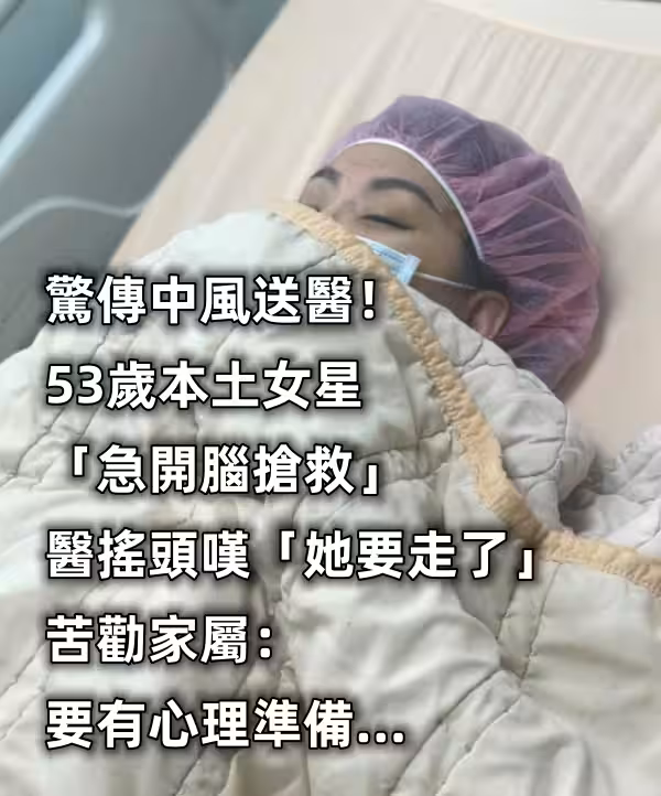 驚傳中風送醫!53歲本土女星「急開腦搶救」 醫搖頭嘆「她要走了...」苦勸家屬:要有心理準備…