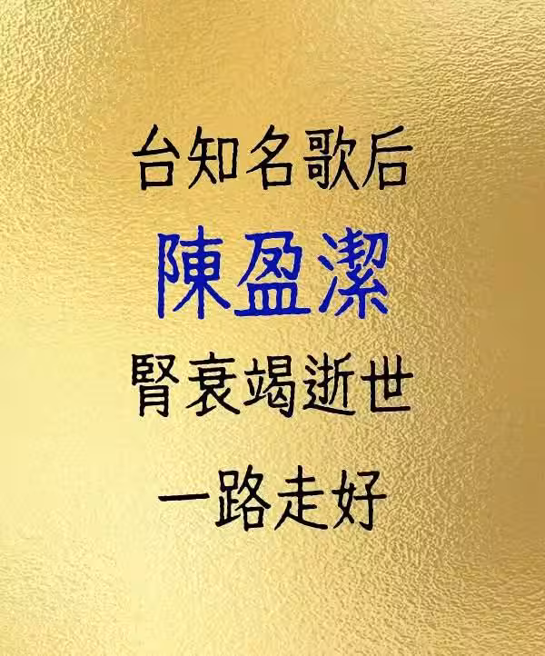 台知名歌后陳盈潔 腎衰竭逝世 一路走好!