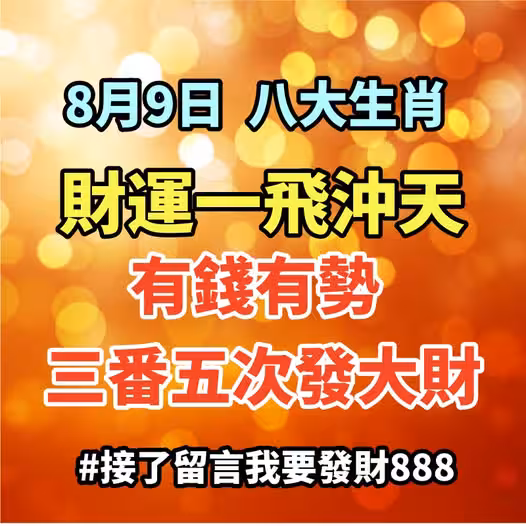8月9日:八大生肖財運一飛沖天,有錢有勢,三番五次發大財