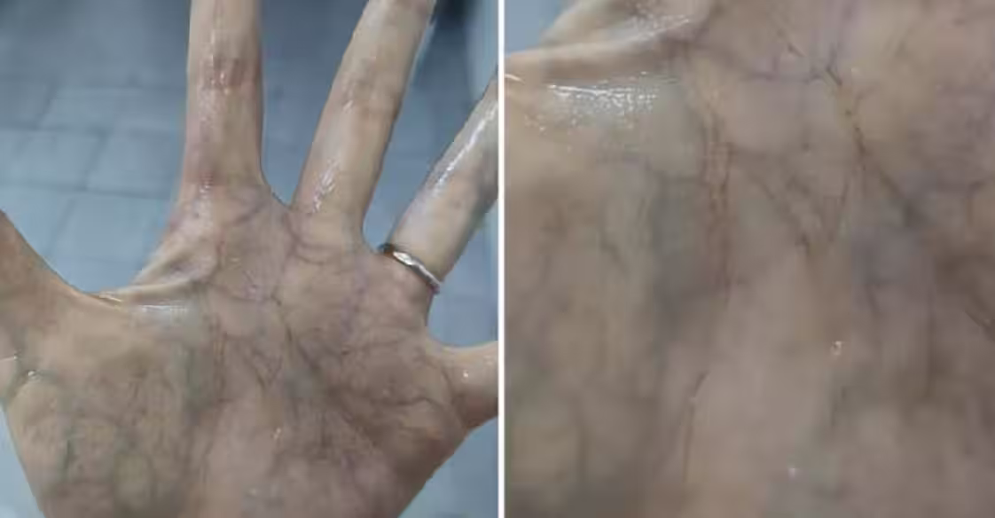 洗完澡驚見手掌「布滿血管如地圖」!網友急喊「1病早期徵兆」:快衝醫院