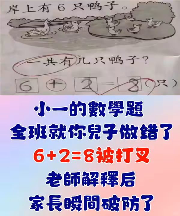 小一數學「全班就你兒子做錯了」 6+2=8被打叉,老師解釋後家長破防了