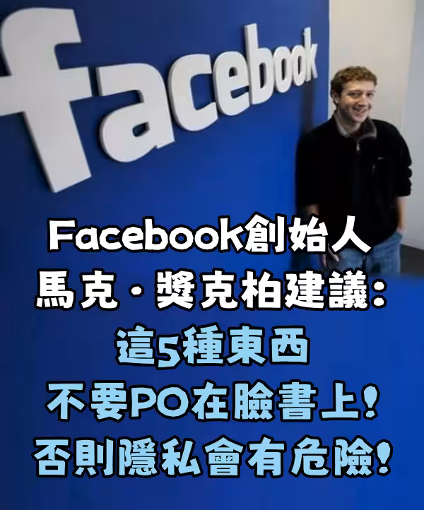 Facebook創始人馬克·獎克柏建議:這5種東西不要PO在臉書上,否則隱私會有危險‼️