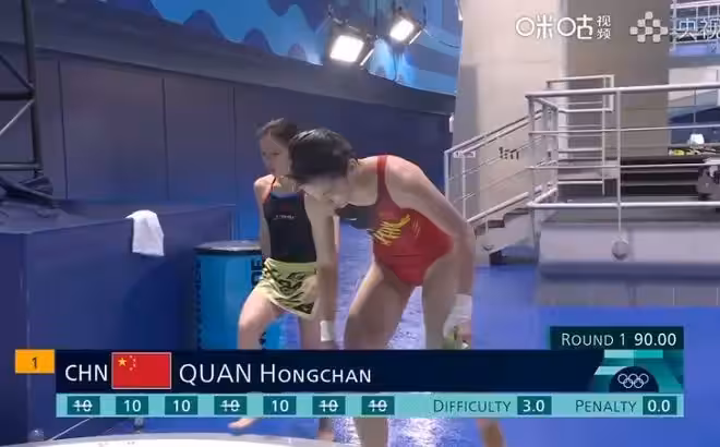 回顧!全紅嬋第一跳得到滿分90分!太完美,7個裁判都給了10分