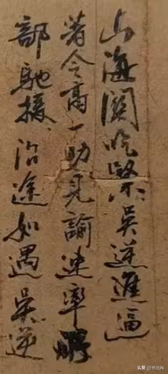 墨法隨書寫節奏呈現濃淡漸變的層次,起筆蘸墨飽滿,行至長句末端墨色漸淡,連筆處遊絲短細,既保筆勢連貫又不影響認讀。整幅作品墨色因書寫速度波動,急寫的軍務指令處枯筆增多,緩寫的落款處墨色溫潤,無炫技成分卻見真情實感。
