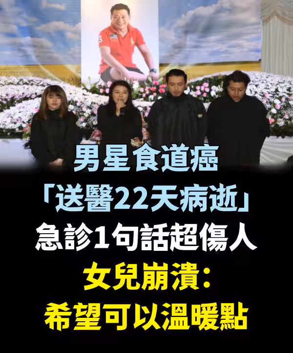 男星食道癌「送醫22天病逝」!急診1句話超傷人 女兒崩潰:希望可以溫暖點....
