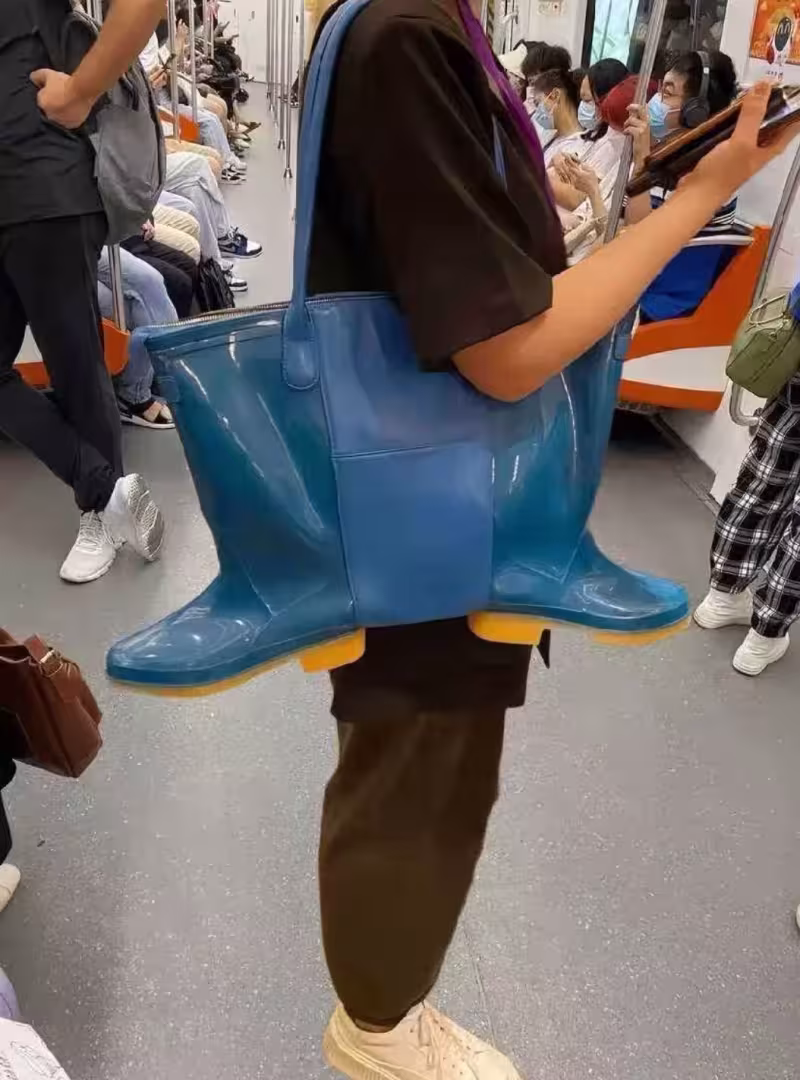 在捷運上遇見一位大哥背著雨鞋做的包,上一秒還在說好心疼,了解價格後:小丑竟是我自己