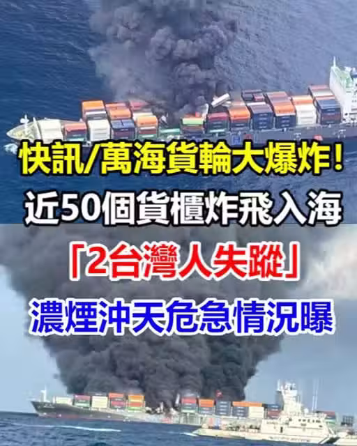 快訊/萬海貨輪大爆炸!近50個貨櫃炸飛入海「2台灣人失蹤...」濃煙沖天危急情況曝