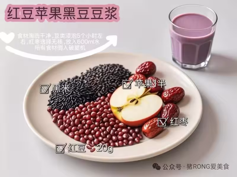 紅豆蘋果黑豆豆漿 蘋果1半+黑米20g+紅棗5顆+紅豆50g