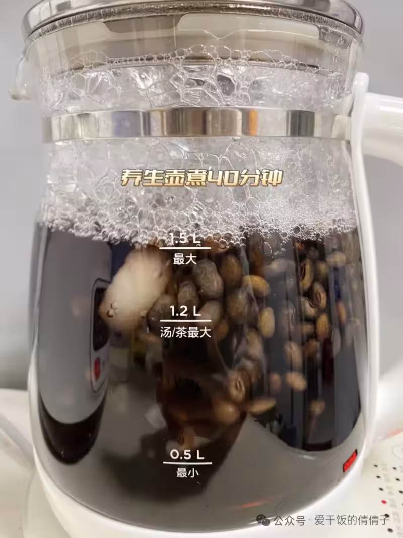 【做法】 1️⃣ 黑豆浸泡過夜; 2️⃣ 馬蹄去皮切厚片; 3️⃣ 材料放入養生壺; 4️⃣ 湯粥模式煮45分鐘。 💡倩倩提醒:馬蹄切片後泡水防氧化。