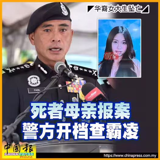 他說,根據解剖報告,女死者的死因證實從高處墜落造成多處受傷,警方在現場調查後,沒有發現涉及刑事成分,案件列為猝死案調查。他指出,警方於同日下午1時57分接獲女死者母親(53歲)的投報,她聲稱不滿女兒生前所面對的遭遇,指女兒在就讀期間,被人霸凌。