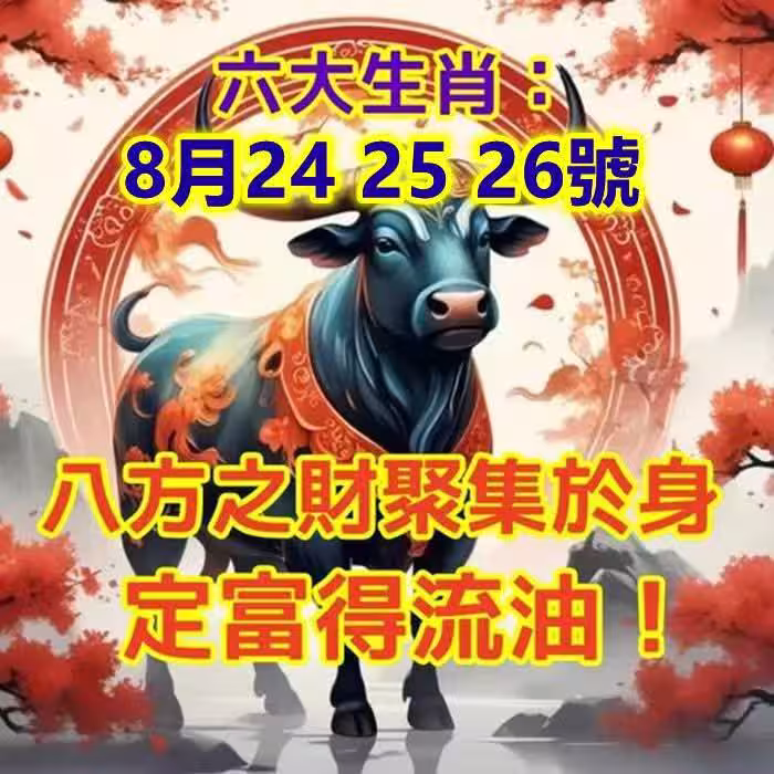 六大生肖:8月24 25 26號八方之財聚集於身,定富得流油.