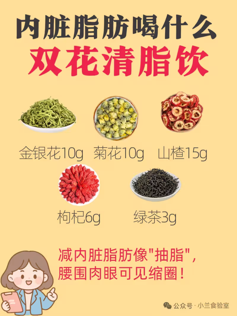 功效:金銀花+菊花清肝火,山楂破油膩,枸杞防燥。減內臟脂肪像"抽脂",腰圍肉眼可見縮圈!