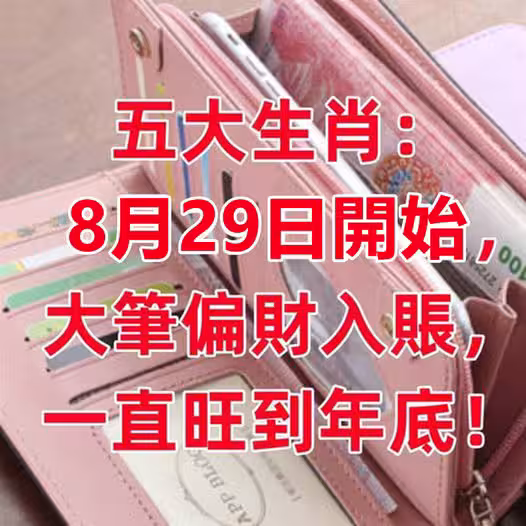 8月29日開始大筆偏財入帳,一直旺到年底的五大生肖!