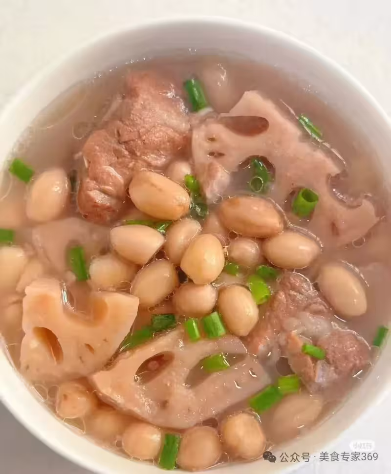 蓮藕清清爽爽地甜,花生香香濃濃的香,排骨軟軟綿綿地爛,這款湯呢,潤潤乎乎地去燥,超貼合乾燥的冬日呢!