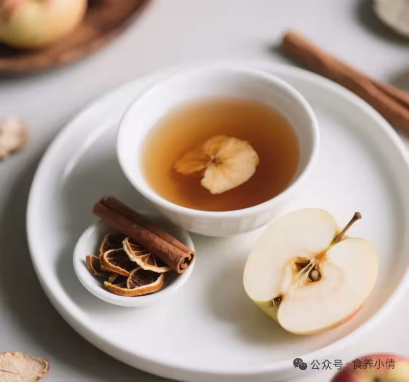 做法:陳皮提前用溫水泡軟,颳去內瓤。蘋果洗凈帶皮切薄片。將所有材料放入鍋中,加適量清水,大火煮開後轉小火慢燉15分鐘就能喝了。蘋果和肉桂可以一起吃。