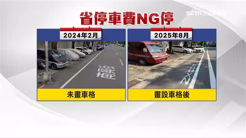 畫車格前後對比。 放眼望去上演「停車怪現象」,路邊明明畫設停車格,但車輛卻停在停車格之間的黃線里,這是彰化市南興街,現況是這樣,再跟2024年的街景對比,當時路邊沒有停車格,一整排的車輛「倒車入庫」,彰化市公所在今年8月畫設路邊收費停車格,但車輛就是有辦法巧妙迴避收費範圍。