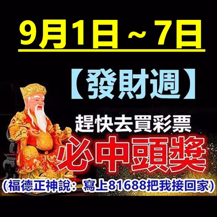 9月1日~7日【發財周】趕快去買彩票,必中頭獎的生肖