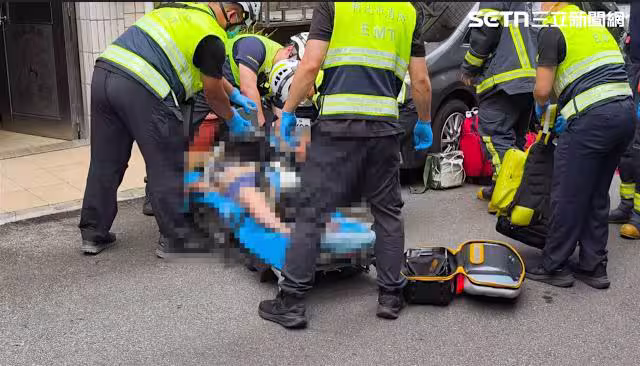 陳婦被救出準備送醫。(圖/記者莊淇鈞攝影)
