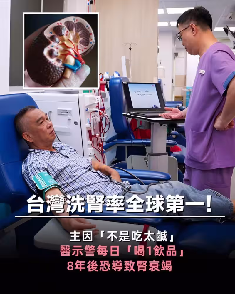 台灣洗腎率全球第一,主因「不是吃太咸」醫示警每日「喝1飲品」8年後恐導致腎衰竭