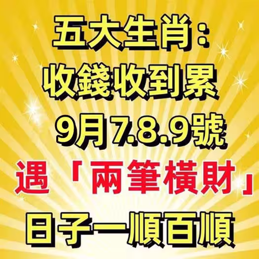 收錢收到累!9月7.8.9號遇「兩筆橫財」五大生肖日子一順百順