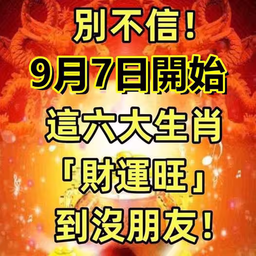 別不信!9月7日開始,這六大生肖「財運旺」到沒朋友!
