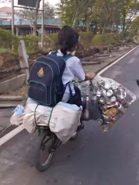 父母雙亡!9歲小女孩上下學騎車撿瓶子賣錢「幫阿姨扛家計」網友贊:懂事的讓人心疼