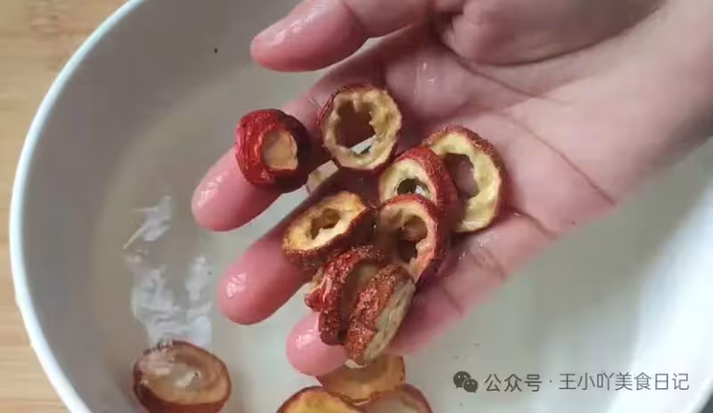 1.洗山楂:把山楂放進清水裡泡一會兒,搓洗乾淨表面的灰塵,瀝干水分備用。要是怕酸可以去核,帶核煮的話香味更濃郁。