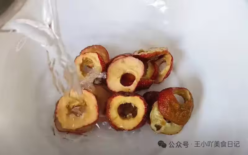 山楂干清洗:接下來是山楂乾的清洗工作。別看它小小一顆,表面凹凸不平,藏污納垢的能力可不小。加入適量清水,撒上一小把食鹽,攪拌均勻,讓食鹽充分溶解,這樣可以起到消毒殺菌的作用。