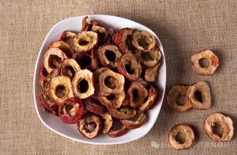 山楂干30克,由山楂製成,富含維生素和有機酸,能促進消化,吃多了不消化時來點,胃立馬舒服。