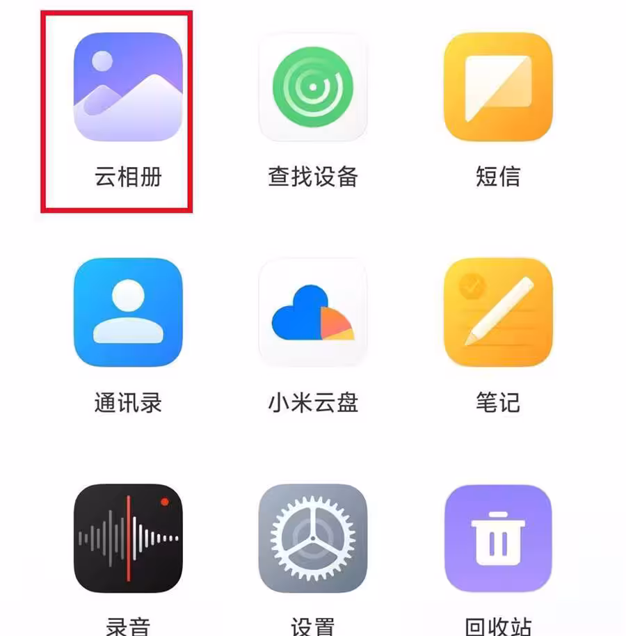 在雲端數據裡邊,就可以看到有一個雲相冊,那麼在雲相冊裡邊呢,保留的就是我們相冊裡面的照片了,因此當我們不小心把照片刪除了,還可以通過雲相冊來找回