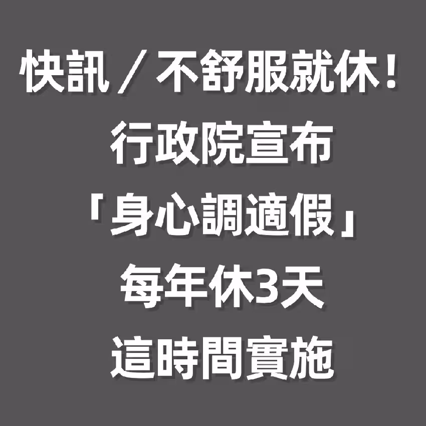 快訊/不舒服就休!行政院宣布「身心調適假」每年休3天...這時間實施