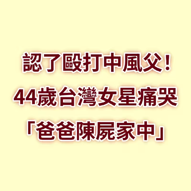 認了毆打中風父!44歲台灣女星痛哭「爸爸陳屍家中!」