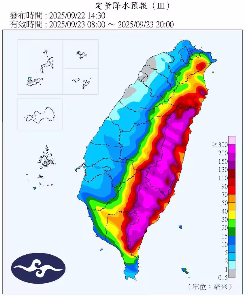 台中、新竹、南投各縣市宣布停班停課,其中屏東枋山鄉、車城鄉、恆春鎮、獅子鄉、牡丹鄉、滿州鄉,以及台東蘭嶼、綠島9/22停班停課,周一颱風假。