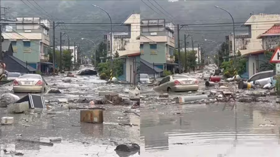 花蓮光復大淹水! 商品全被衝出來,住戶爬屋頂避難,老人神情恍惚、孩子嚇哭
