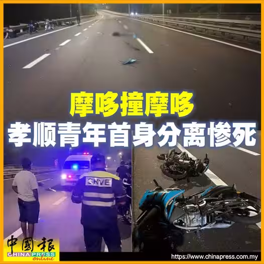 青年在大道騎摩哆時,疑與一輛摩哆發生碰撞,導致青年被拋飛路面後,頭部斷裂慘死在現場,死狀恐怖!