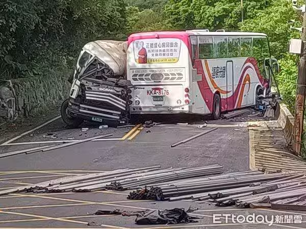 事故發生在今天上午7時55分,砂石車原本由基隆往金山方向行駛,不料卻突然失控沖向對向車道,直接撞上正往台北方向行駛的國光客運。