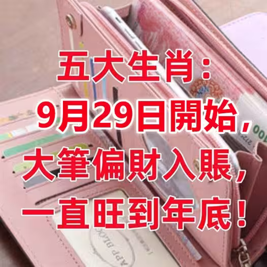 9月29日開始大筆偏財入帳,五大生肖一直旺到年底!