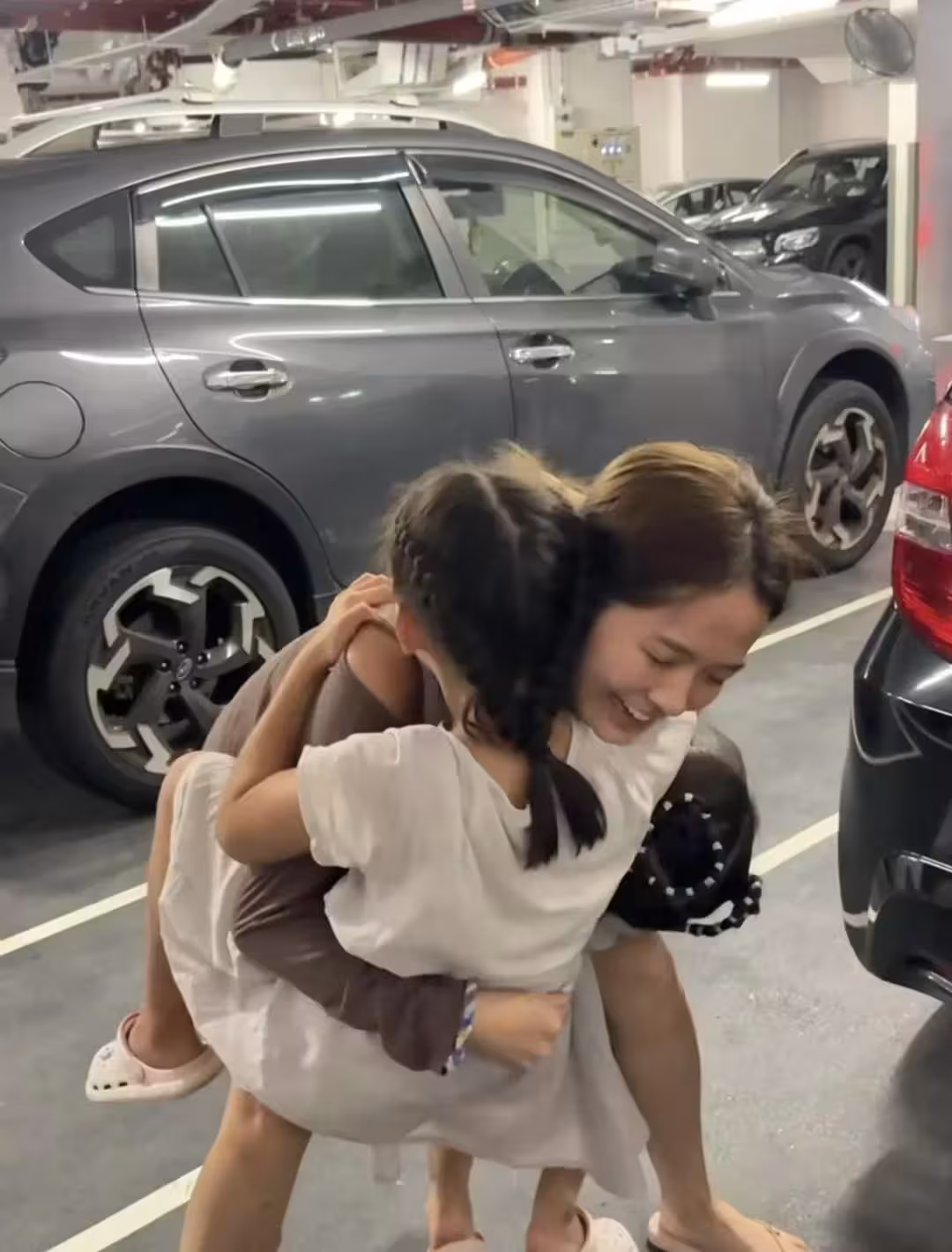 梁敏巧日前在社交網站上發布了多張"照顧小孩"的照片。照片中,她帶著兩個小朋友一起去游泳,孩子們像樹袋熊一樣緊緊抱著Maggie(梁敏巧),還幫她編辮子,看起來關係十分親密。