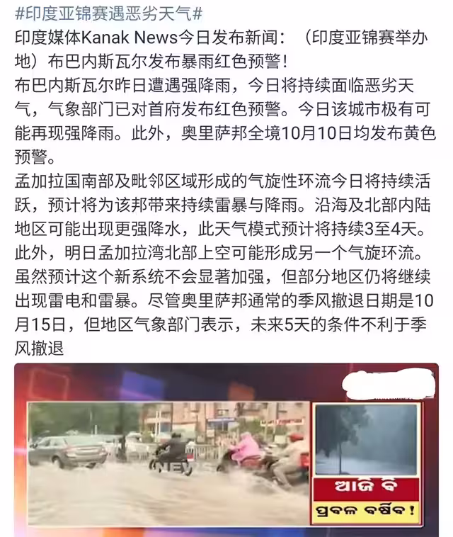 亞錦賽城市暴雨!王楚欽疑似生病,寶島隊公開批評:印度水質堪憂