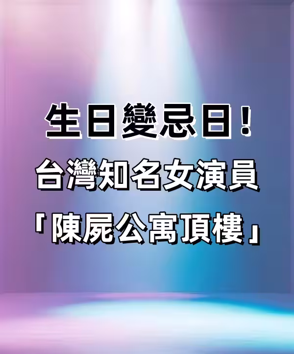 生日變忌日!台灣知名女演員「陳屍公寓頂樓!」